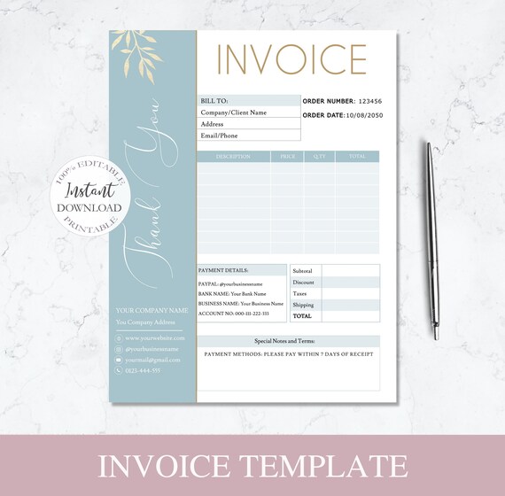 Invoice Template Editable Small Business Printable Invoice Etsy Nederland